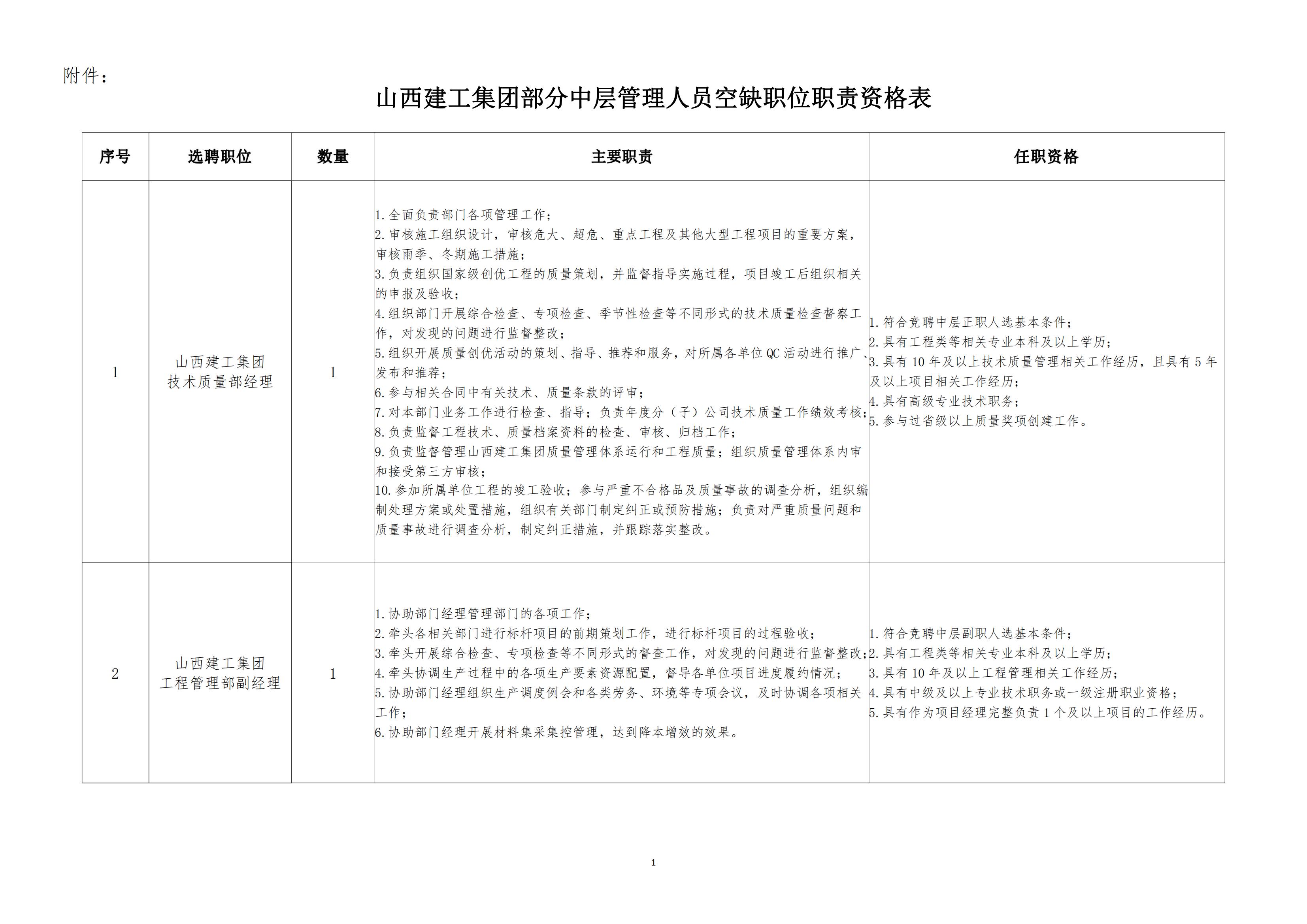 1. 山西建工集团工程管理部副����� �������Ƴ������������ �������Ƴ������������ �������Ƴ������������ �������Ƴ�������经理1名;
