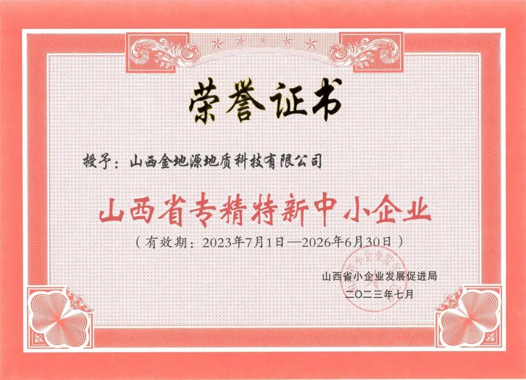 近日,山西金地源地质科技有限公司荣获����� �������Ƴ����������� �������Ƴ������������ �������Ƴ������������ �������Ƴ�������“山西省专精特新中小企业”荣誉证书。此次入����� �������Ƴ������������ �������Ƴ������������ �������Ƴ������������ �������Ƴ�������选是继该公司被评为科技型中小企业、创新型中小企业����� �������Ƴ������������ �������Ƴ������������ �������Ƴ������������ �������Ƴ�������、高新技术企业后的又一重大荣誉,为企业在品牌����� �������Ƴ������������ �������Ƴ����������� �������Ƴ������������ �������Ƴ�������提升、政策优惠、科研补助、技术支持、人才����� �������Ƴ������������ �������Ƴ������������ �������Ƴ������������ �������Ƴ�������招聘等方����� �������Ƴ�������� �������Ƴ������������ �������Ƴ������������ �������Ƴ������������ �������Ƴ���������面带来多重利好,进一步推动企业在专业����� �������Ƴ������������ �������Ƴ������������ �������Ƴ������������ �������Ƴ�������化、精细化、特色化、新颖化道路上行稳致远����� �������Ƴ������������ �������Ƴ������������ �������Ƴ������������ �������Ƴ�������。