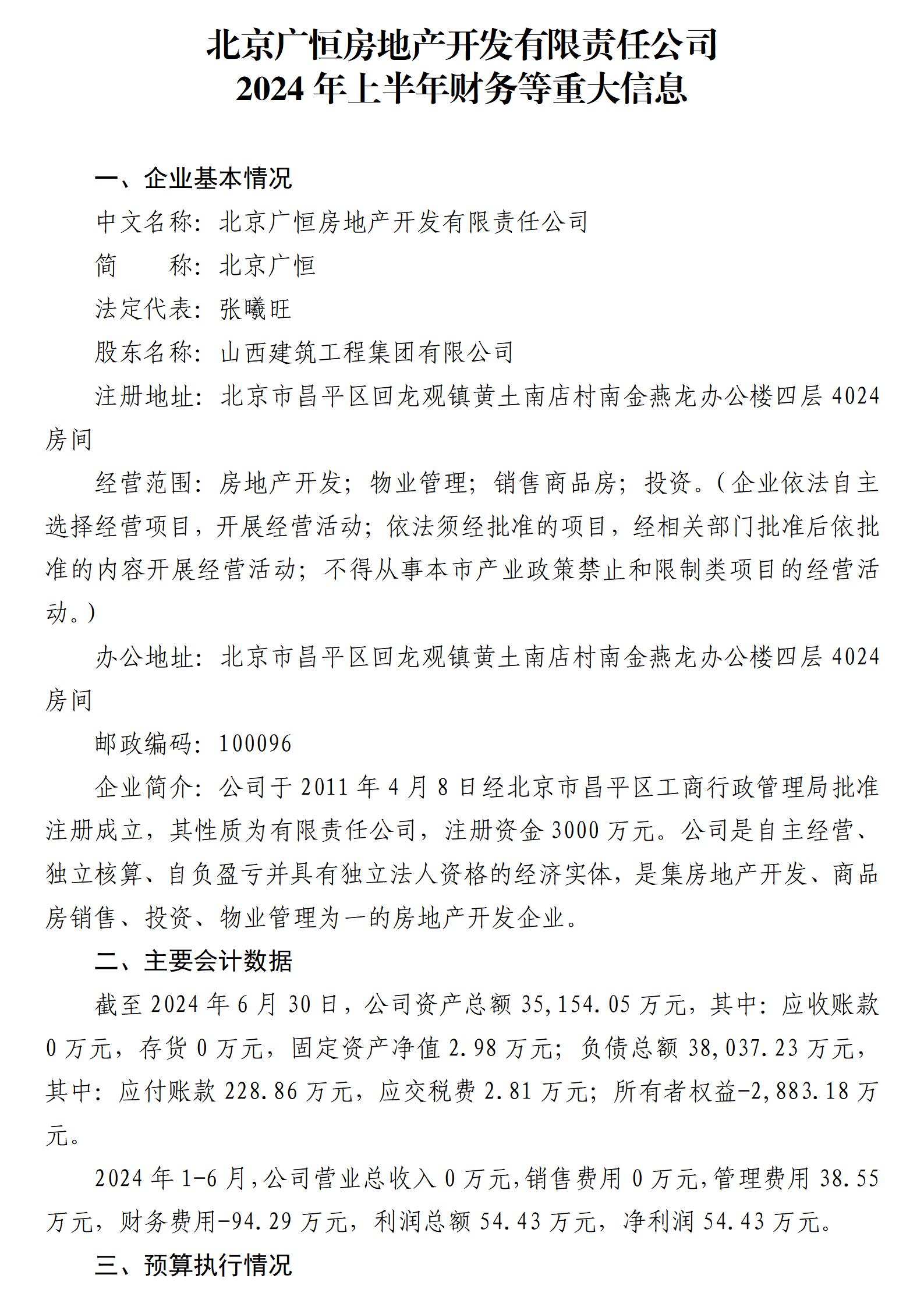 北京广恒房地产开发有限责任公司2024年上����� �������Ƴ������������ �������Ƴ����������� �������Ƴ������������ �������Ƴ������������ ������������ �������Ƴ����������� �������Ƴ������������ �������Ƴ������������ �������Ƴ�������Ƴ�������半年财务等重大信息